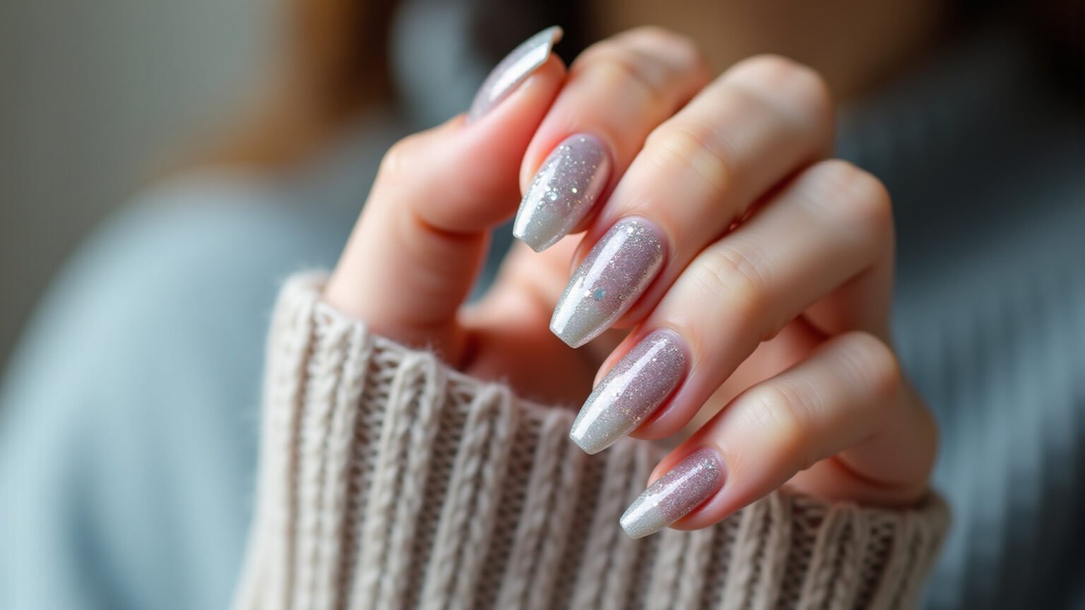 Queridinha, se você ama um visual discreto, mas não abre mão de um toque de glamour, o minimalismo chic com micro-glitter é a pedida certa para o inverno! Imagina só: unhas curtinhas, com um formato bem cuidado, e uma camada finíssima de glitter que parece um véu de fada. Super elegante, né?