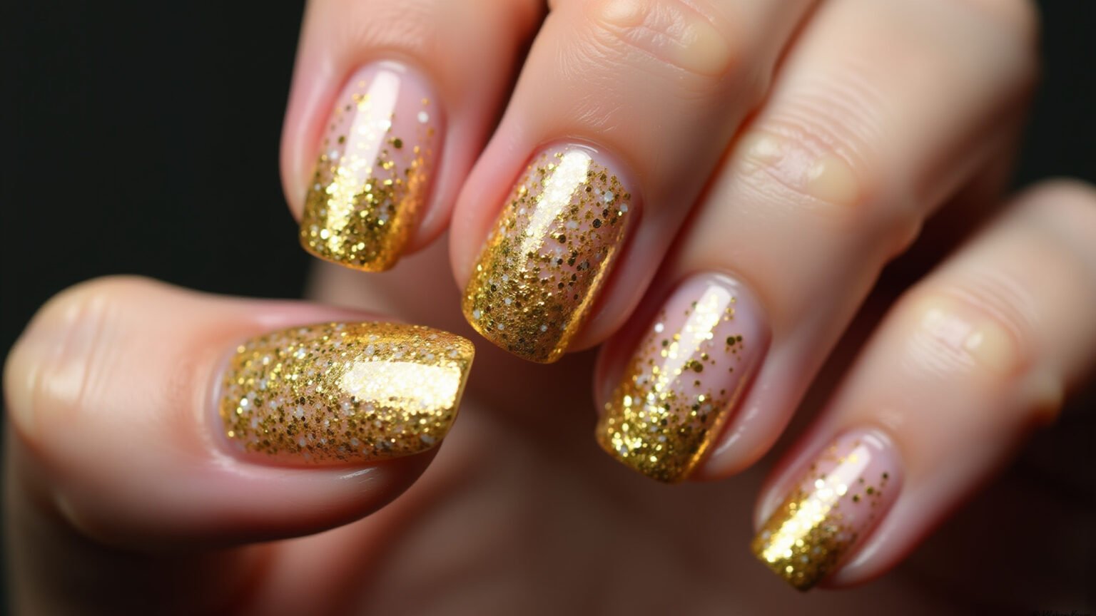 Dica Prática: Para um efeito ainda mais sofisticado, experimente usar um gel com glitter dourado já incorporado. Assim, você economiza tempo e garante um resultado uniforme e duradouro.