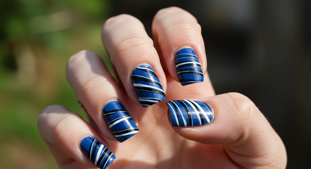 As listras são um clássico e ficam lindas nas unhas. Você pode fazer listras horizontais, verticais ou diagonais, usando as cores do Grêmio. Essa opção é super versátil e combina com qualquer estilo.