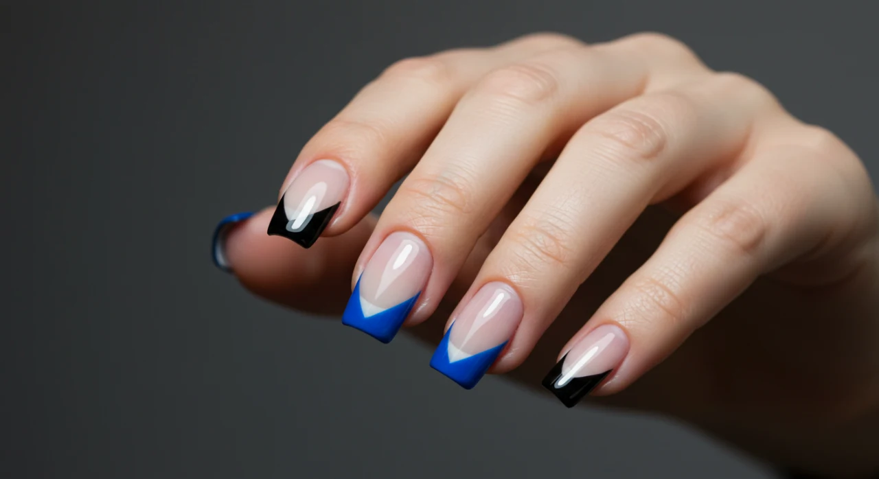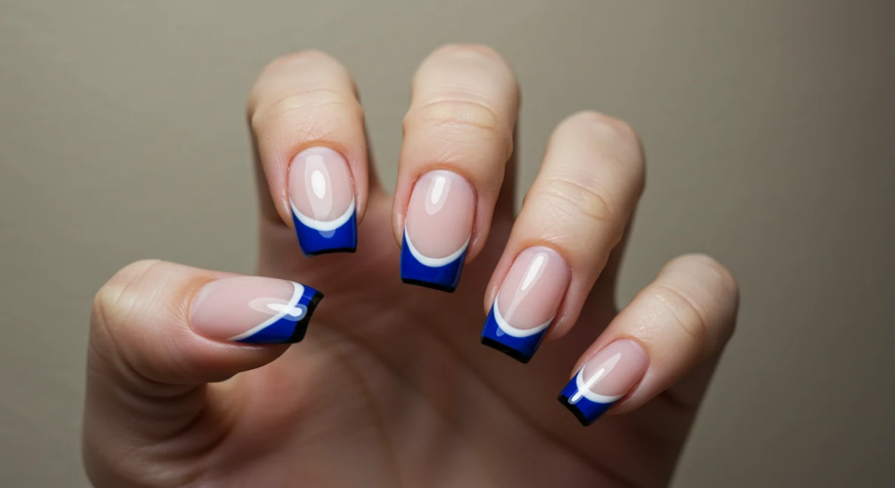Essa é a opção mais tradicional e fácil de fazer. Você pode pintar cada unha com uma das cores do Grêmio, alternando entre elas. Ou, se preferir, pode fazer uma francesinha azul com a ponta preta. Fica super elegante e discreto!